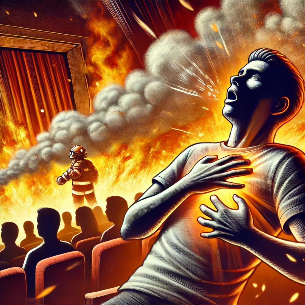 불타는 장면이나 연기에 의해 숨이 답답해지고 호흡이 어려워지는 경험은 실제로 많은 사람들이 겪는 증상입니다. 특히 불과 연기, 또는 위험한 상황에서의 긴장감은 우리의 생리적 반응을 촉발시킵니다. 불은 사람에게 심리적인 위협을 주는 요소로, 연기의 특성상 호흡을 방해하는 느낌을 주기 때문에 자연스럽게 답답함을 느낄 수 있습니다.