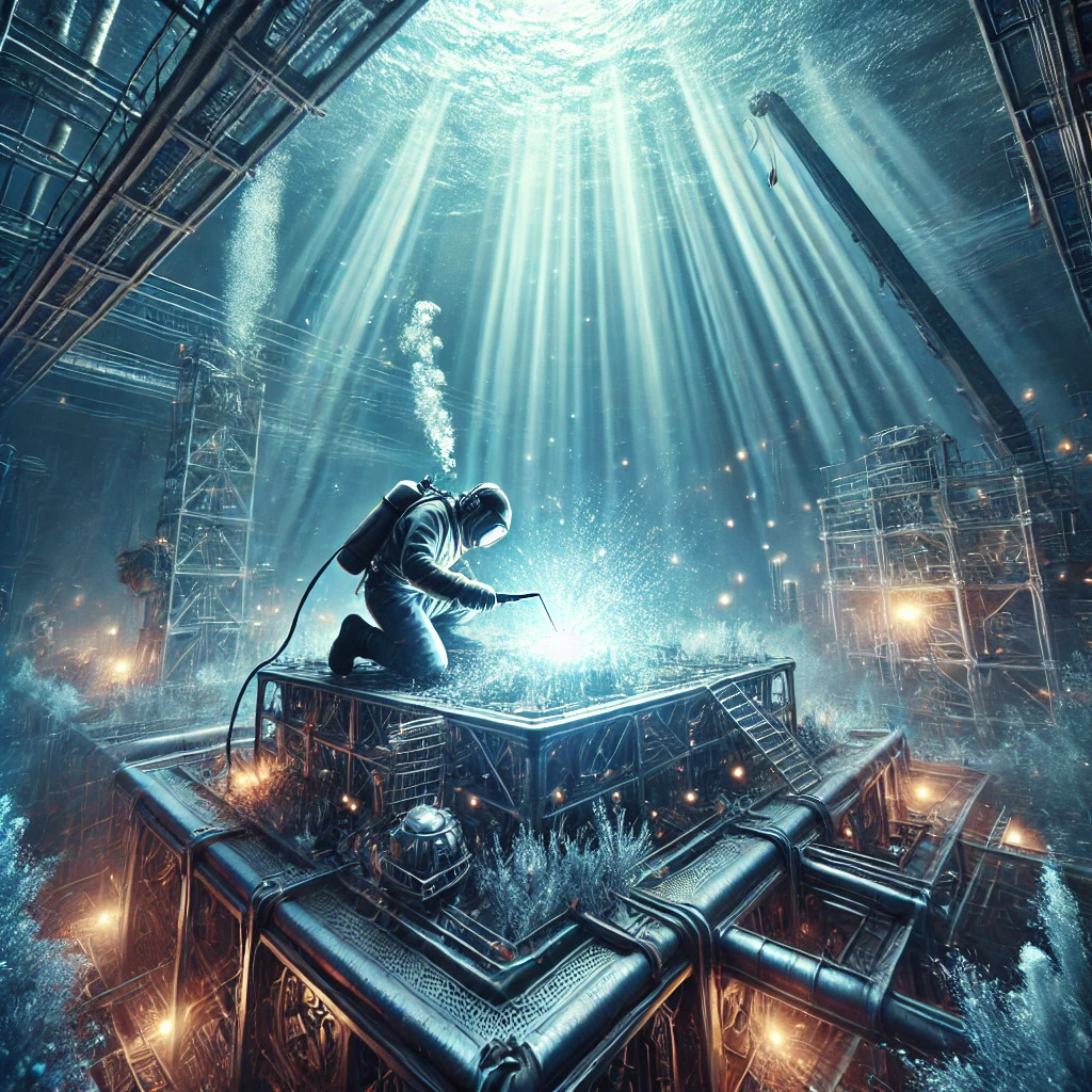 수중용접은 물속에서 용접 작업을 수행하는 기술로, 바다나 호수와 같은 수중 환경에서 금속을 결합하는 중요한 방법입니다. 수중에서 이루어지는 용접은 그 특성상 일반적인 공기 중에서의 용접 작업과는 다른 점이 많으며, 고도의 기술과 특수 장비가 필요합니다. 수중용접은 해양 구조물, 잠수함, 해저 케이블 및 파이프라인, 그리고 여러 해양 기반 시설의 수리와 유지 보수를 위해 널리 사용됩니다. 하지만, 물속에서 용접을 수행하는 것은 여러 가지 도전적인 요소가 있으며, 이 작업을 안전하고 효율적으로 수행하기 위한 원리와 기술이 존재합니다.