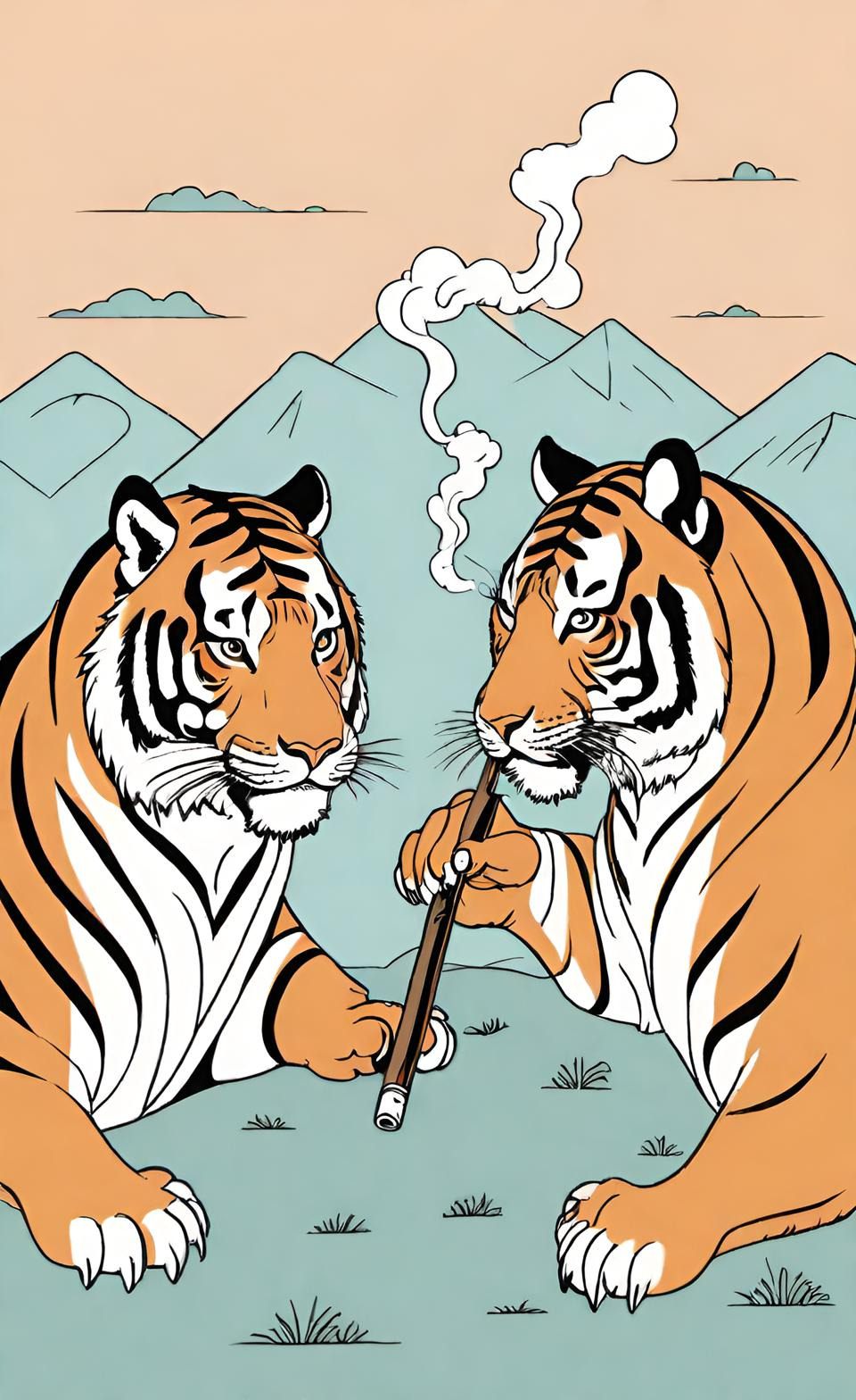 호랑이는 한국 전통 설화에서 주인공으로 자주 등장하는 동물입니다. 한국은 호랑이를 강하고 영리하며 위엄 있는 존재로 여기며, 때때로 인간과 같은 감정을 가진 캐릭터로 묘사합니다. 그런데 왜 담배를 피우는 호랑이일까요? 이는 조선 시대 이후 담배 문화가 확산되면서 담배 피우는 장면이 사람들의 삶에 자연스럽게 녹아들었기 때문입니다. 이로 인해 사람들은 호랑이와 같은 상상 속의 존재에게도 담배를 피우는 설정을 부여해 ‘오래된 옛날’을 표현한 것입니다.