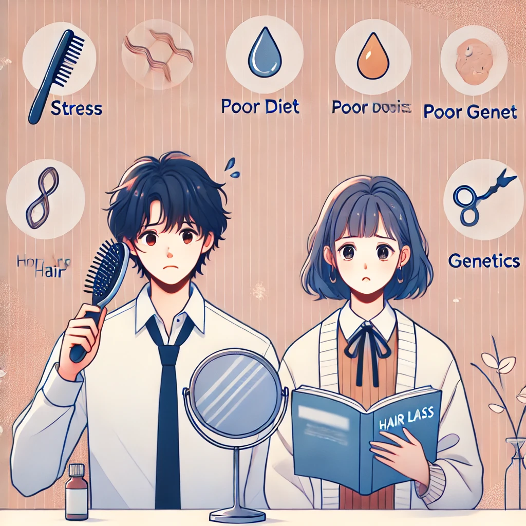 - 청소년기는 학업, 대인관계, 진로 고민 등으로 많은 스트레스를 받는 시기입니다. 스트레스는 체내 호르몬 균형에 영향을 미쳐 탈모를 유발할 수 있습니다.